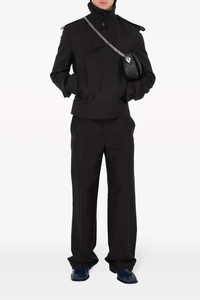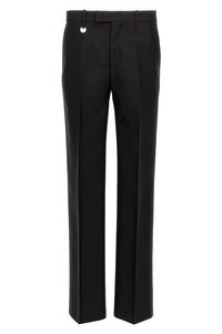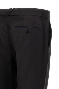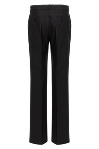 cod. 8088592BLACK Tailored trousers with stretched pleat, side and back pockets with button, zip, hook and button closure, metal logo in the front loop. Color: Black Size & Fit: true to size fit Composition: 60% virgin wool 40% silk