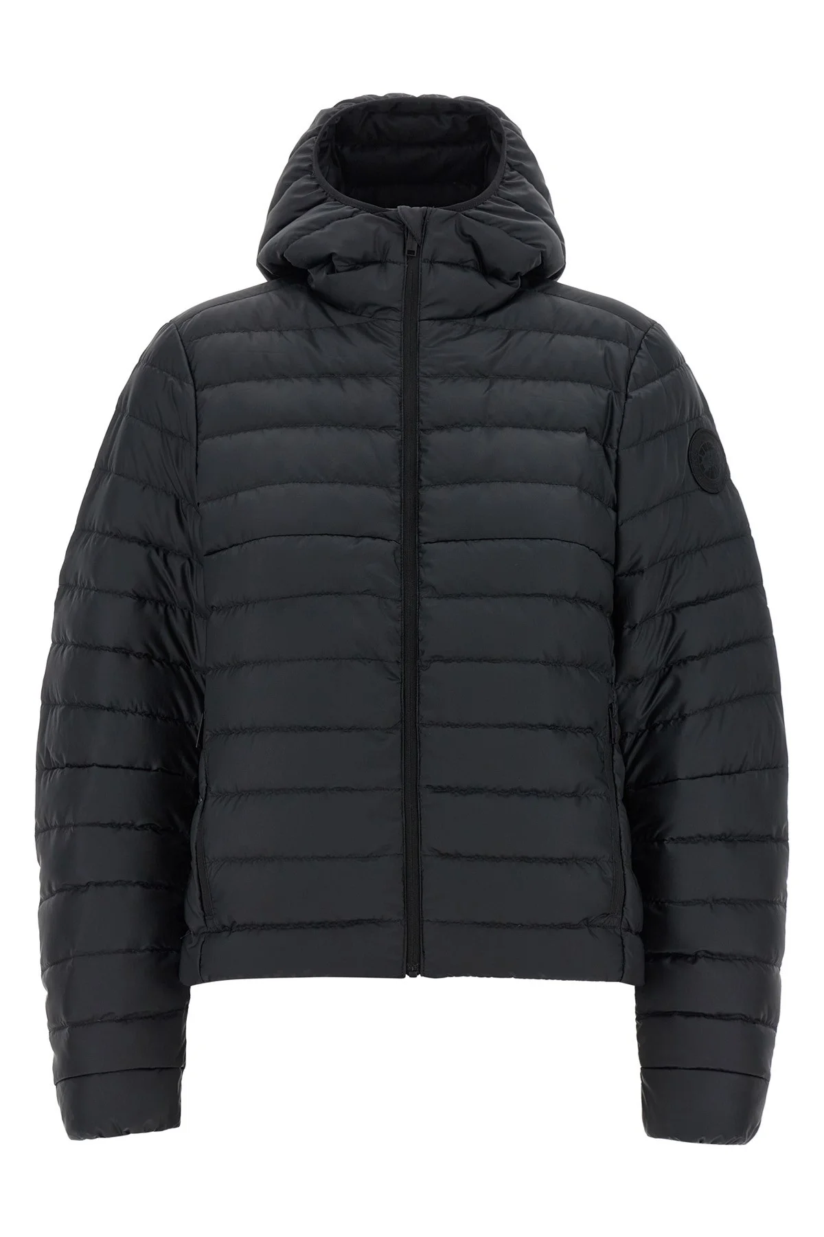 cod. 2482WT9061 'Aethera' water-repellent down jacket with ripstop structure, quilted and slightly goose feather padding, hood, front zip closure, pockets, long sleeves with elastic cuffs and tone-on-tone logo patch applique, drawstring on the hem, foldable in the right pocket. Color: Black Size & Fit: true to size fit Composition: 100% polyamide Made in: Canada