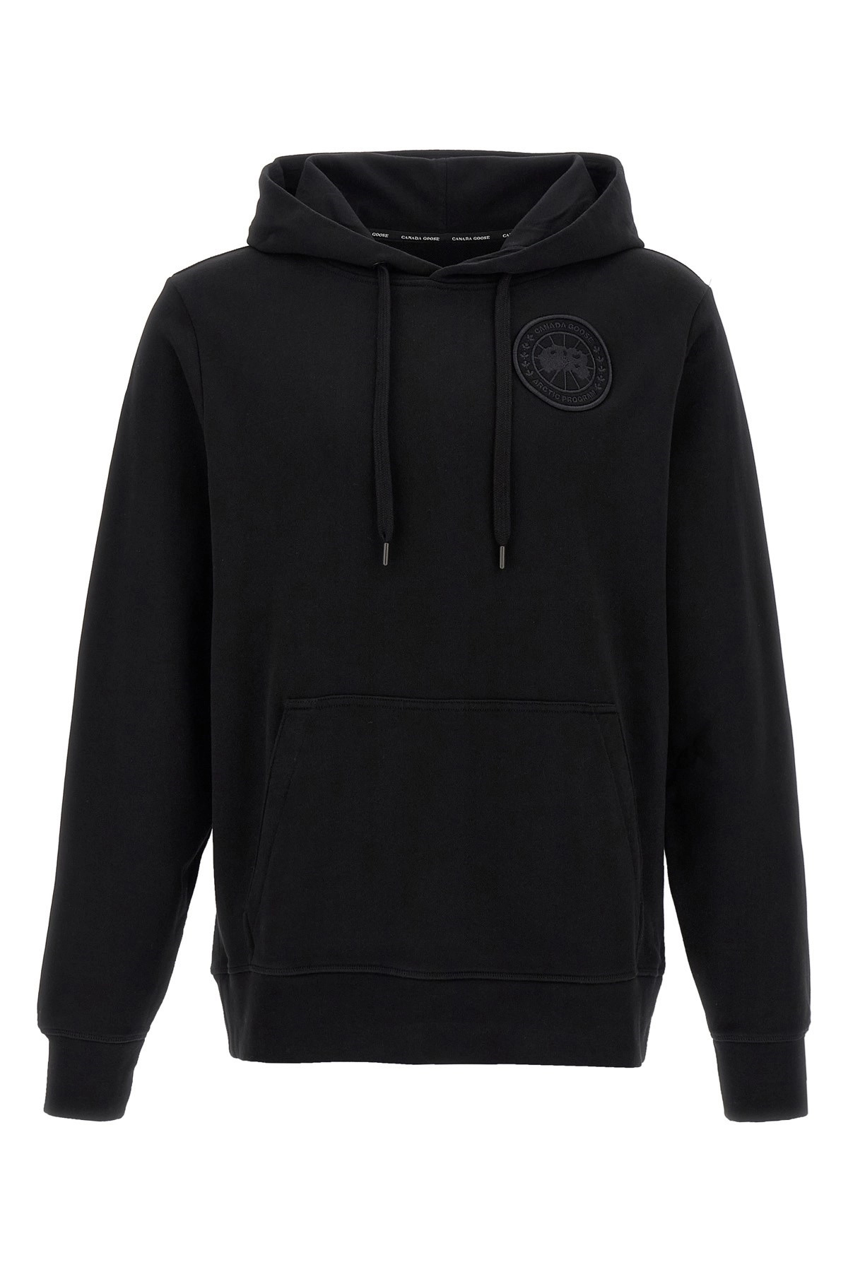 cod. 7403M59061 Huron' gauze cotton hoodie with tone-on-tone logo patch on the front, tone-on-tone embroidery, back embroidery, kangaroo pocket, long cuffed sleeves and a dropped shoulder. Color: Black Size & Fit: oversized fit Composition: 100% cotton Made in: Portugal