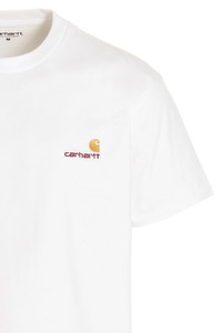 cod. I02995602XX 'American Script' cotton crew neck T-shirt with front embroidered logo and short sleeves. JULIAN SUSTAINABLE: This product is made from organic cotton. Color: White Size & Fit: true to size fit Composition: 100% cotton Made in: bangladesh