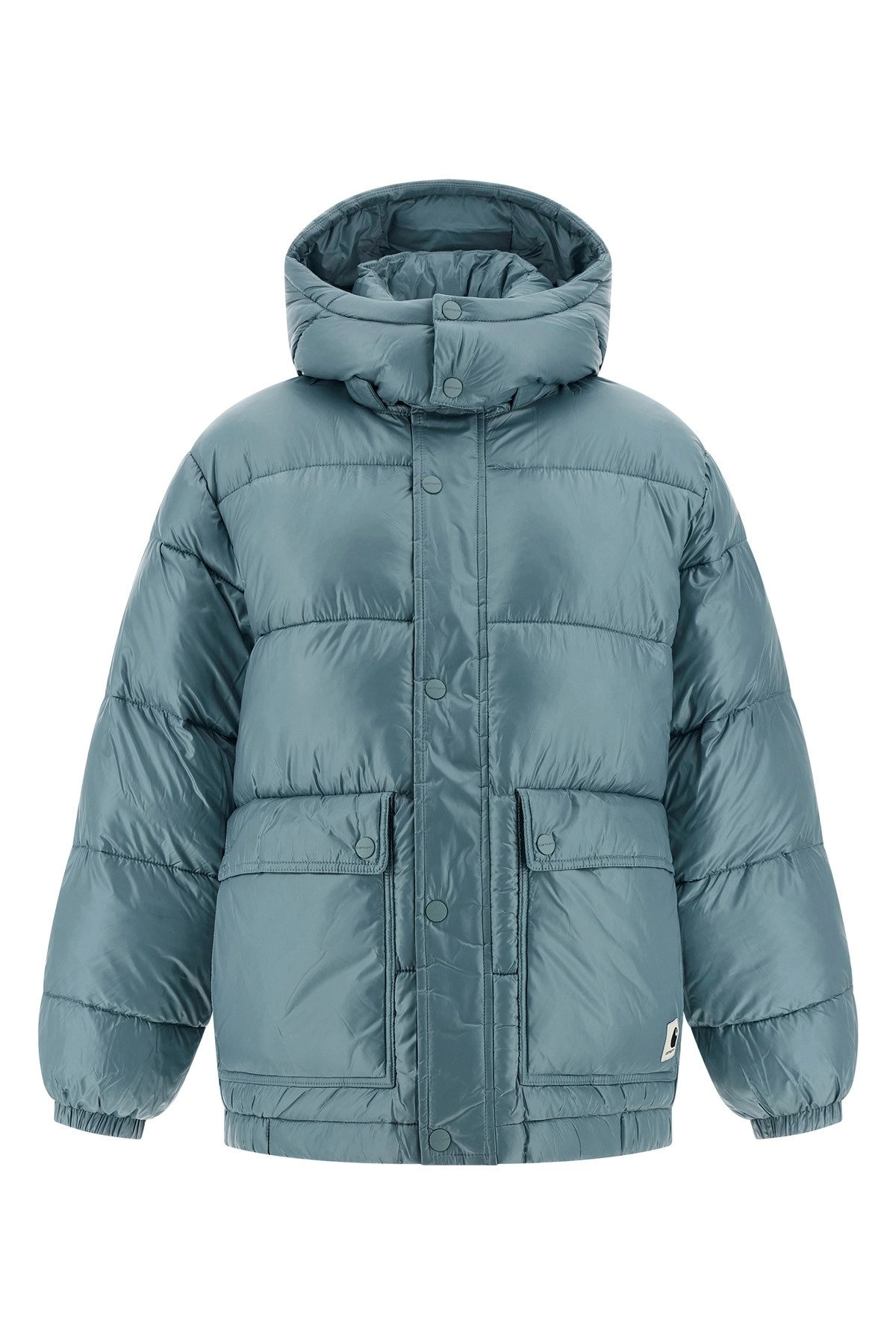 cod. I03537033EXX 'Benson' quilted and padded nylon down jacket, adjustable and removable hood, standing collar, logo patch and front zip and snap button closure, pockets, long sleeves with elastic cuffs, elastic hem. Color: Light Blue Size & Fit: Loose fit Composition: 100% polyester Made in: bangladesh