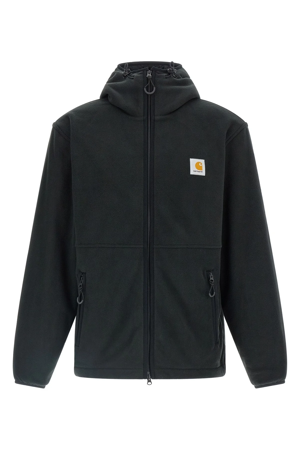 cod. I03531089XX 'Blevin' medium weight polyester fleece jacket with contrast piping, mesh lining, adjustable hood, logo patch and front zip closure, pockets, long cuffed sleeves, drawstring at the hem. Color: Black Size & Fit: Comfort fit Composition: 100% polyester Made in: Cambodia