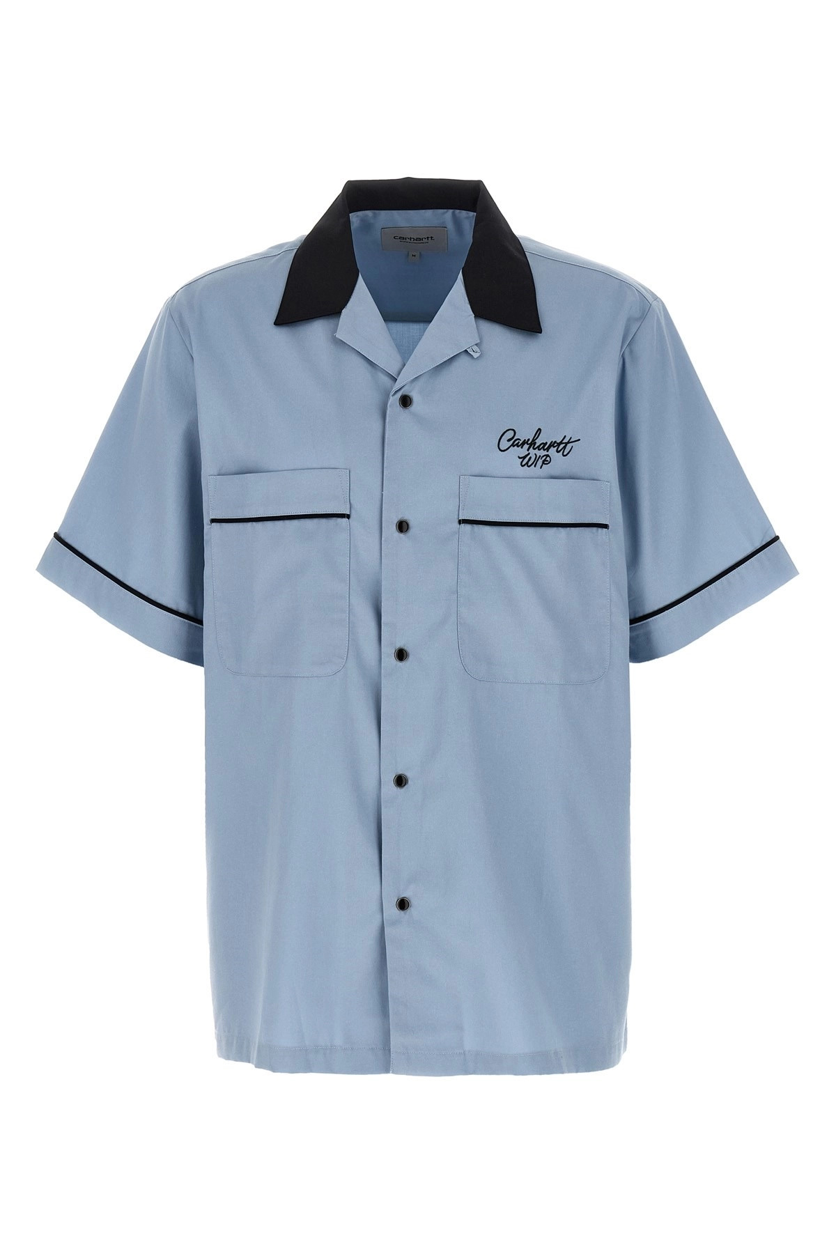 cod. I03515331WXX 'Bowl' cotton blend shirt with collar, front pocket with logo and contrast piping, front snap button closure, short sleeves. Color: Light Blue Size & Fit: True to size fit Composition: 60% tencel, 40% cotton Made in: bangladesh