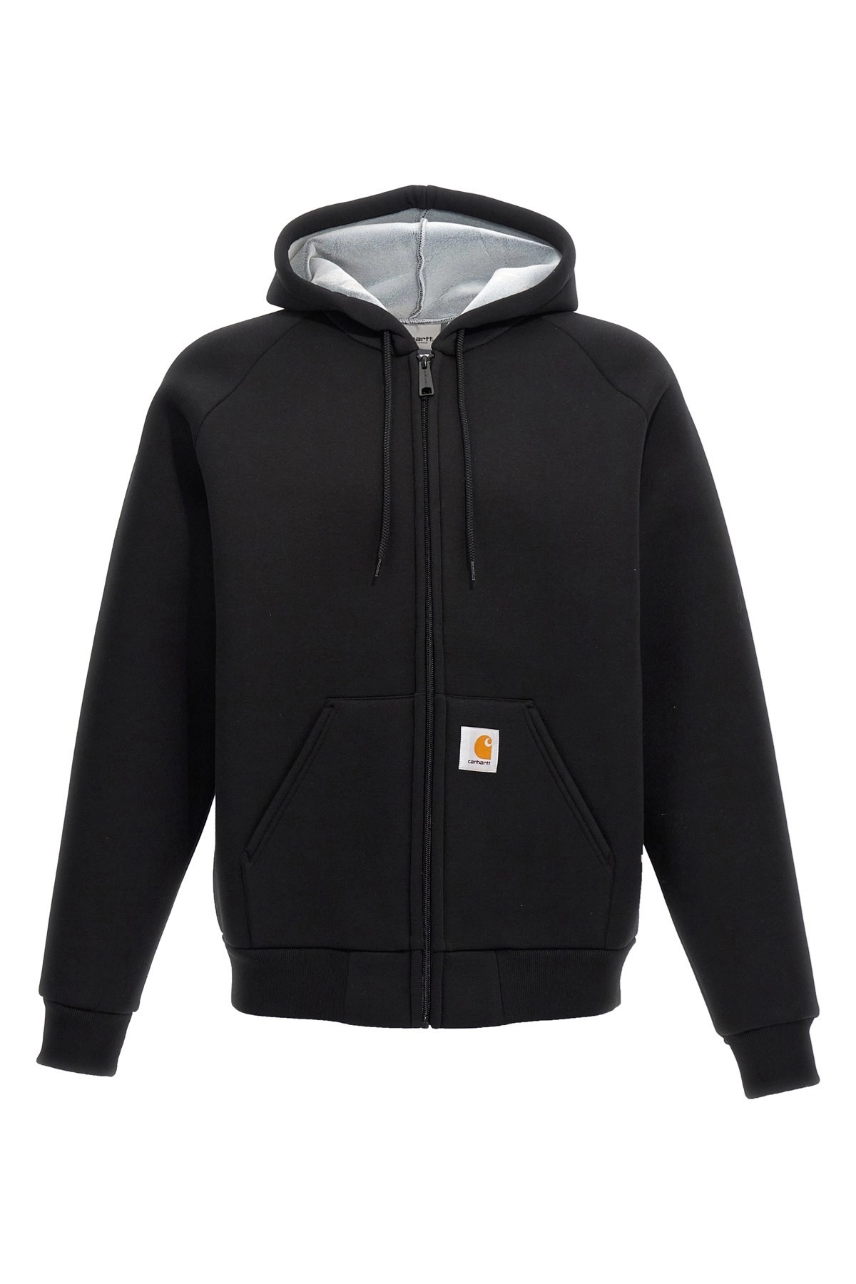 cod. I0329350GLXX 'Car-Lux' cotton blend hooded jacket with front logo patch, zip closure, pockets, long cuffed sleeves. Color: Black Size & Fit: true to size fit Composition: 50% polyester, 50% cotton Made in: Turkey
