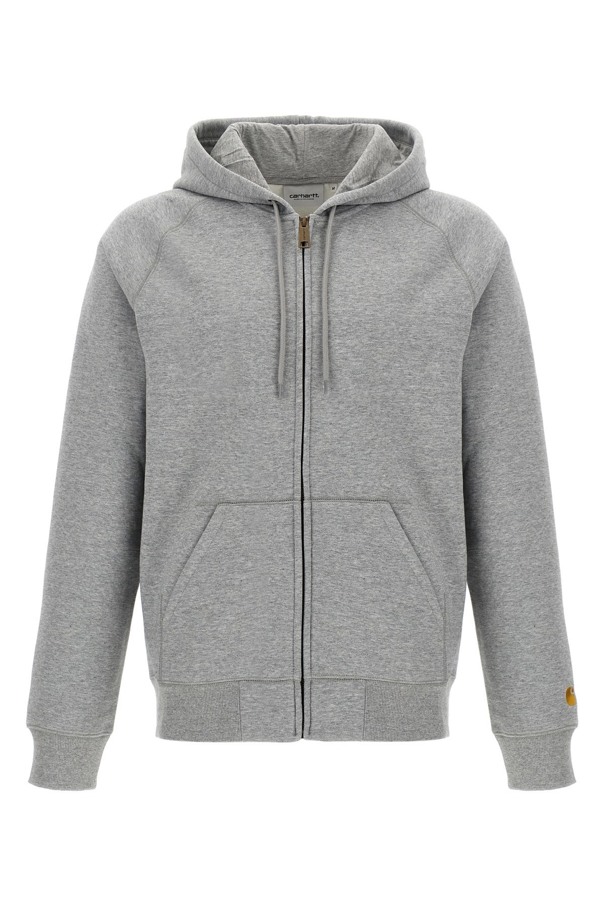 cod. I03366400MXX 'Chase' hoodie in heavy melange brushed polycotton jersey, front zip closure, pockets, long cuffed sleeves and contrast logo embroidery. Color: Gray Size & Fit: true to size fit Composition: 58% cotton, 42% polyester Made in: Pakistan