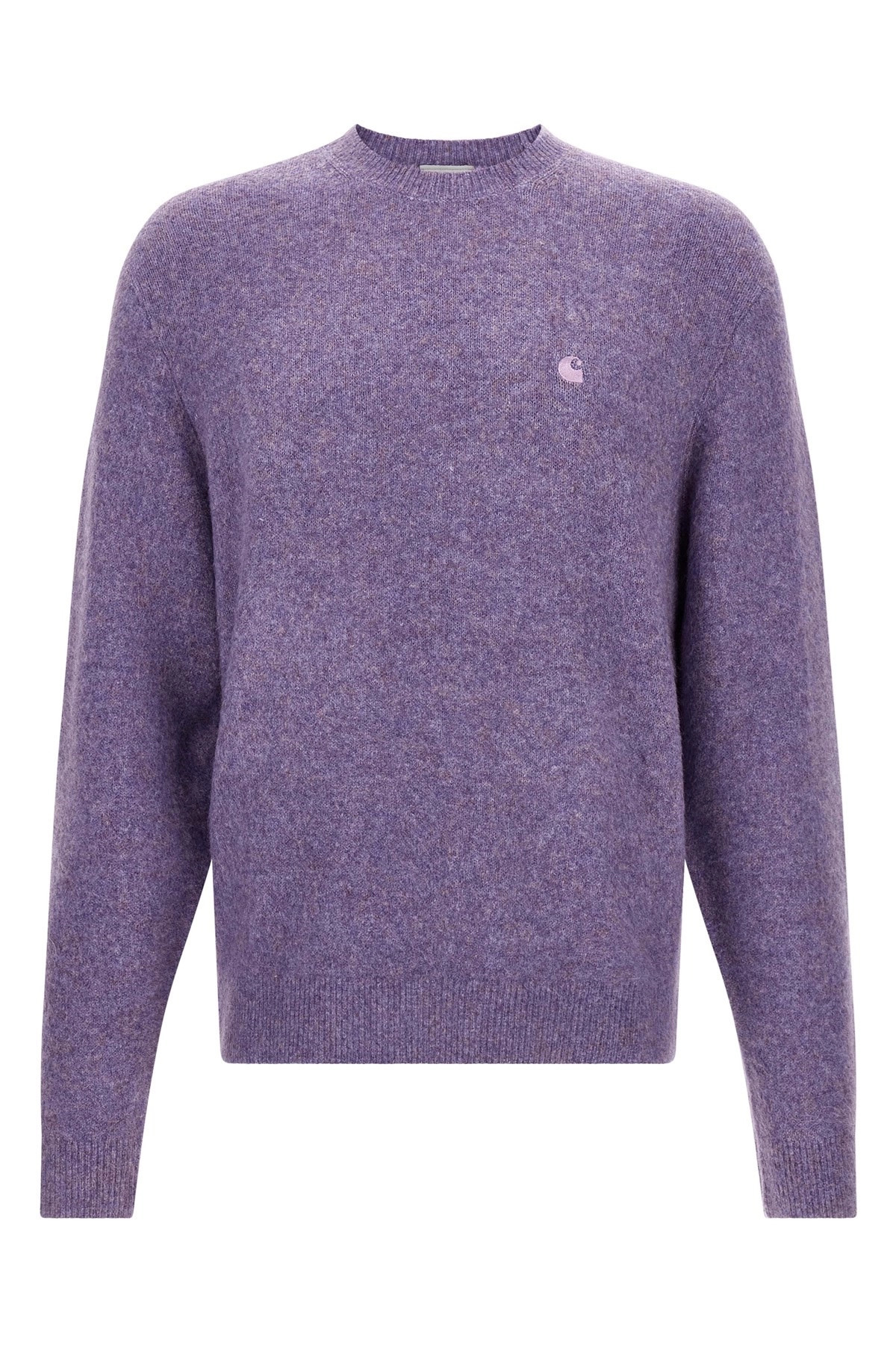 cod. I0353943B0XX 'Curtis' sweater in melange wool yarn blend with tone-on-tone logo embroidery on the front, crew neck, long sleeves with cuffs and dropped shoulders. SUSTAINABLE: Product made from recycled polyester. Color: Purple Size & Fit: true to size fit Composition: 51% acetate 32% polyester 11% nylon 4% wool 2% elastane Made in: Cambodia