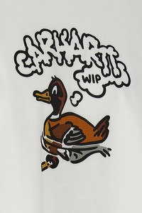 cod. I03673502XX 'Duck Duck' T-shirt in medium-weight cotton jersey with front print, crew neck, short sleeves. SUSTAINABLE: This product is made of organic cotton. Color: White Size & Fit: Comfort fit Composition: 100% organic cotton Made in: Bulgaria PROMO CODE NOT APPLICABLE