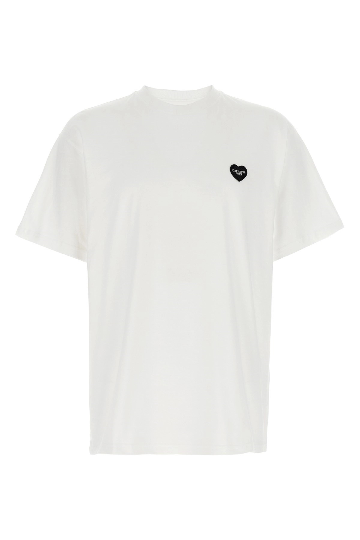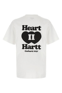 cod. I03520302XX 'Heart II Hartt' lightweight cotton jersey t-shirt with front logo patch, back print, crew neck, short sleeves with dropped shoulders. SUSTAINABLE: This product is made of organic cotton. Color: White/Black Size & Fit: Loose fit Composition: 100% organic cotton Made in: Bulgaria