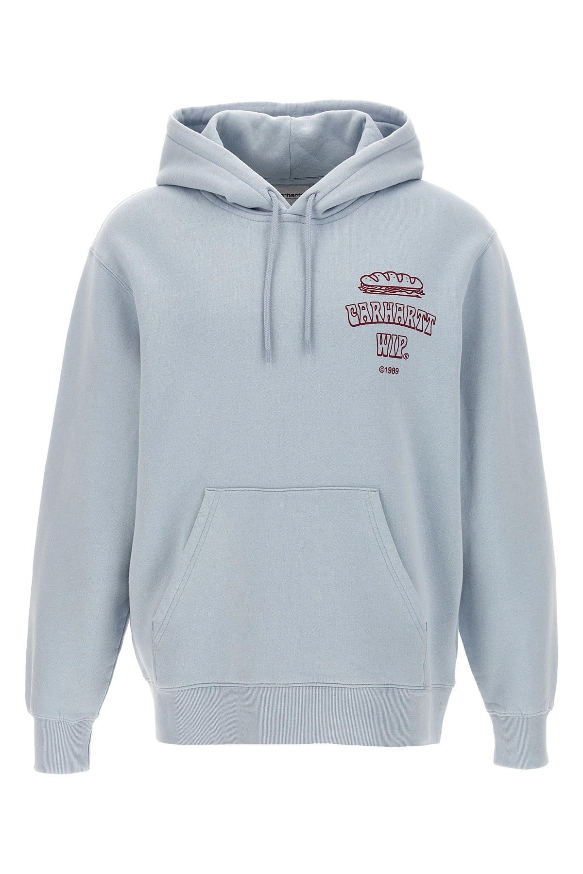 cod. I03527736BXX 'Hooded Sandwich' cotton sweatshirt with drawstring hood, kangaroo pocket, logo print on the front and back, long cuffed sleeves. Color: Blue Size & Fit: True to size fit Composition: 100% cotton Made in: bangladesh PROMO CODE NOT APPLICABLE