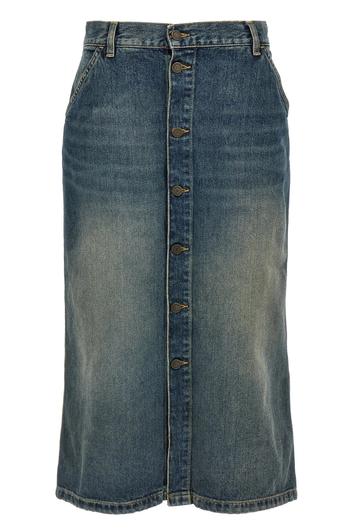 cod. I034647014Q Marvin' midi skirt in used-effect Smith denim, front button closure, pockets, and back leather logo patch. Color: Blue Size & Fit: true to size fit Composition: 100% cotton Made in: Tunisia