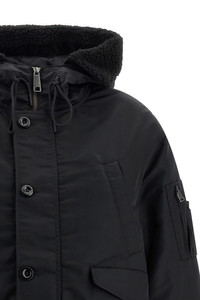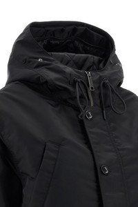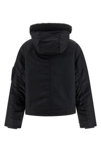cod. I03531889XX 'Oltera' water-repellent medium weight nylon fabric jacket, diamond-shaped quilted lining, adjustable hood with removable teddy-effect fleece insert, crop style, high neck, front zip and button closure, pockets, long sleeves with stretch knit cuffs, drawstring on the hem. Color: Black Size & Fit: true to size fit Composition: 100% nylon Made in: Cambodia
