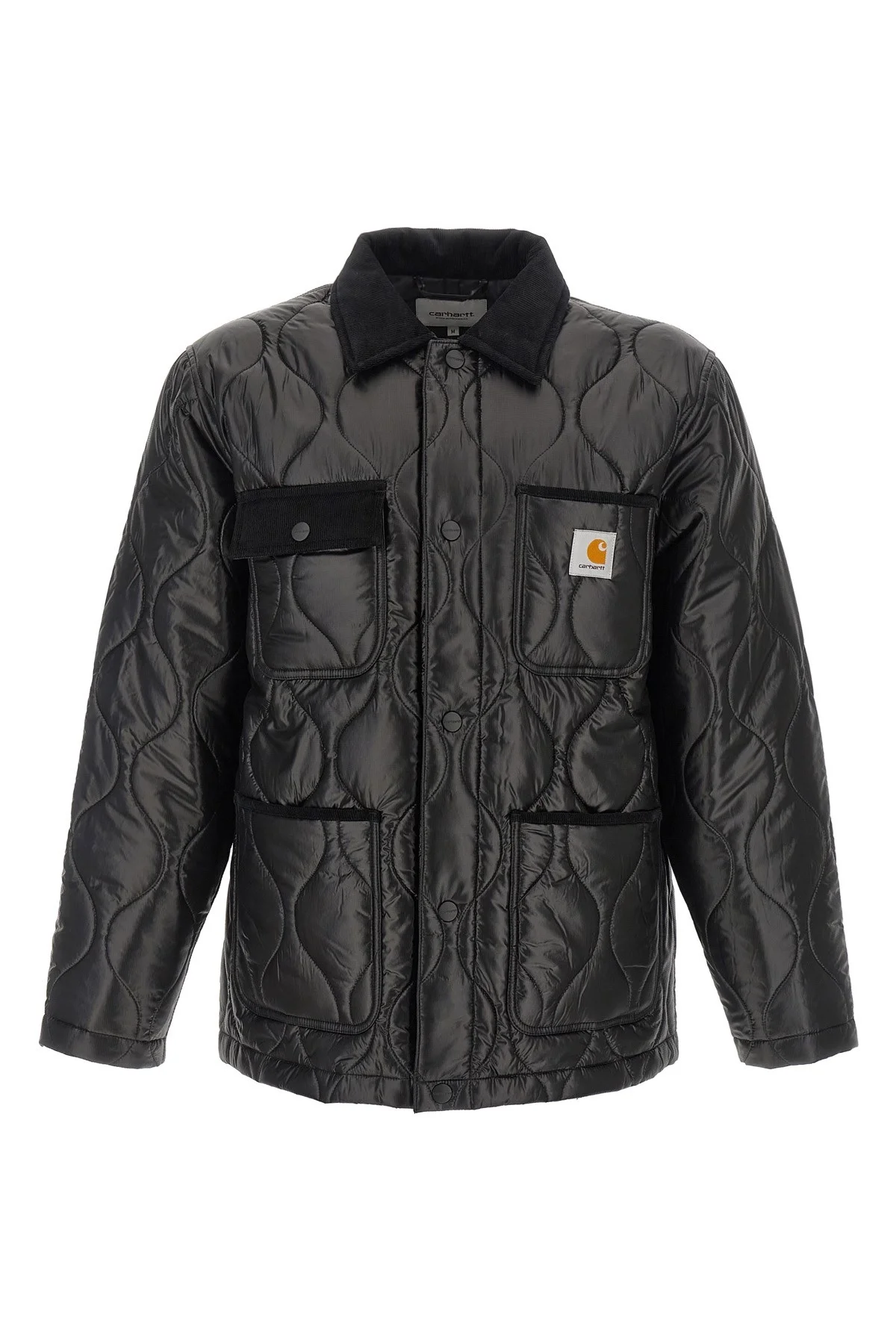 cod. I03536689XX Oscar' quilted nylon jacket with tonal corduroy collar and details, logo patch and front snap button closure, pockets, long cuffed sleeves. Color: Black Size & Fit: Loose fit Composition: 100% polyester Made in: bangladesh