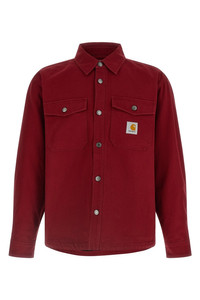 cod. I035305H8XX 'Selby' overshirt in heavy garment-dyed cotton canvas, fleece lining, logo patch and front button closure, pockets, long sleeves with cuffs and dropped shoulders. Color: Red Size & Fit: true to size fit Composition: 100% cotton Made in: Cambodia