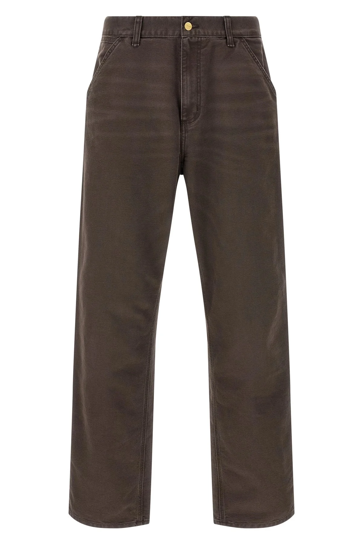 cod. I034798474O 'Single Knee' trousers in heavy Dearborn cotton canvas Stone Canvas wash, comfortable straight leg, regular waist, front zip and button closure, pockets, back logo patch. SUSTAINABLE: This product is made of organic cotton. Color: Brown Size & Fit: Relaxed straight fit Composition: 100% organic cotton Made in: Tunisia