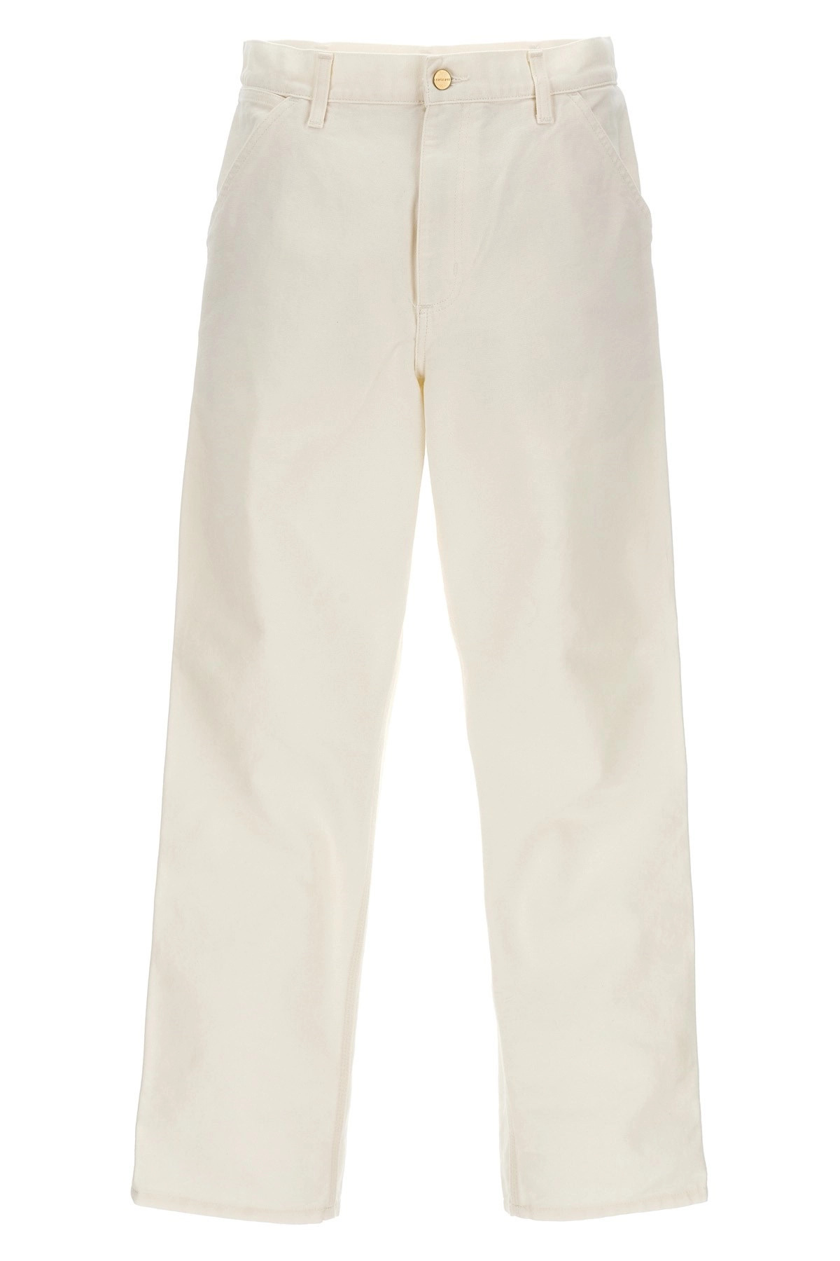 cod. I031497D602 'Single knee' cotton canvas trousers with straight leg. Color: White Size & Fit: true to size fit Composition: 100% cotton Made in: Tunisia