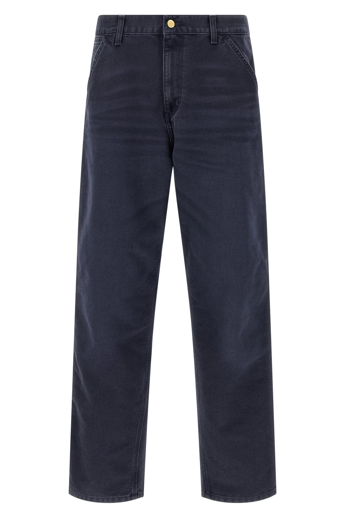 cod. I0347981C4O 'Single Knee' trousers in heavy Dearborn cotton canvas Stone Canvas wash, comfortable straight leg, regular waist, front zip and button closure, pockets, back logo patch. SUSTAINABLE: This product is made of organic cotton. Color: Blue Size & Fit: Relaxed straight fit Composition: 100% organic cotton Made in: Tunisia
