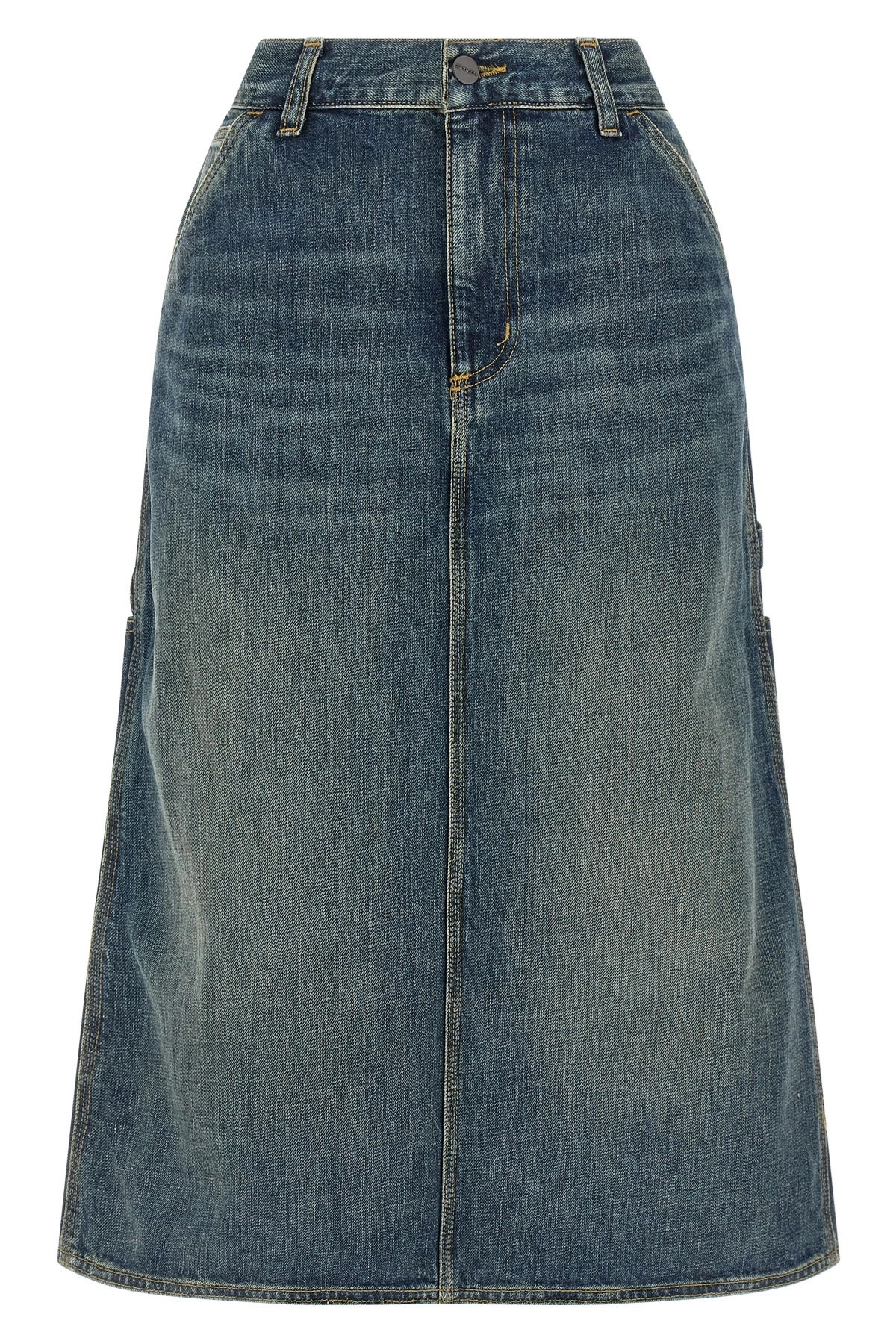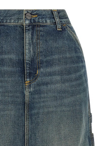 cod. I034224014Q Single Knee' midi skirt in heavy Camano stonewashed cotton denim with contrast stitching, slightly flared silhouette, front zip and button closure, five pockets, logo patch and back split. Color: Blue Size & Fit: Relaxed fit Composition: 100% cotton Made in: Tunisia