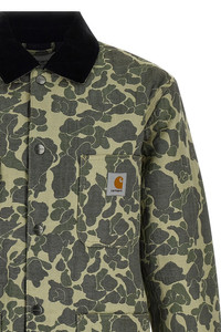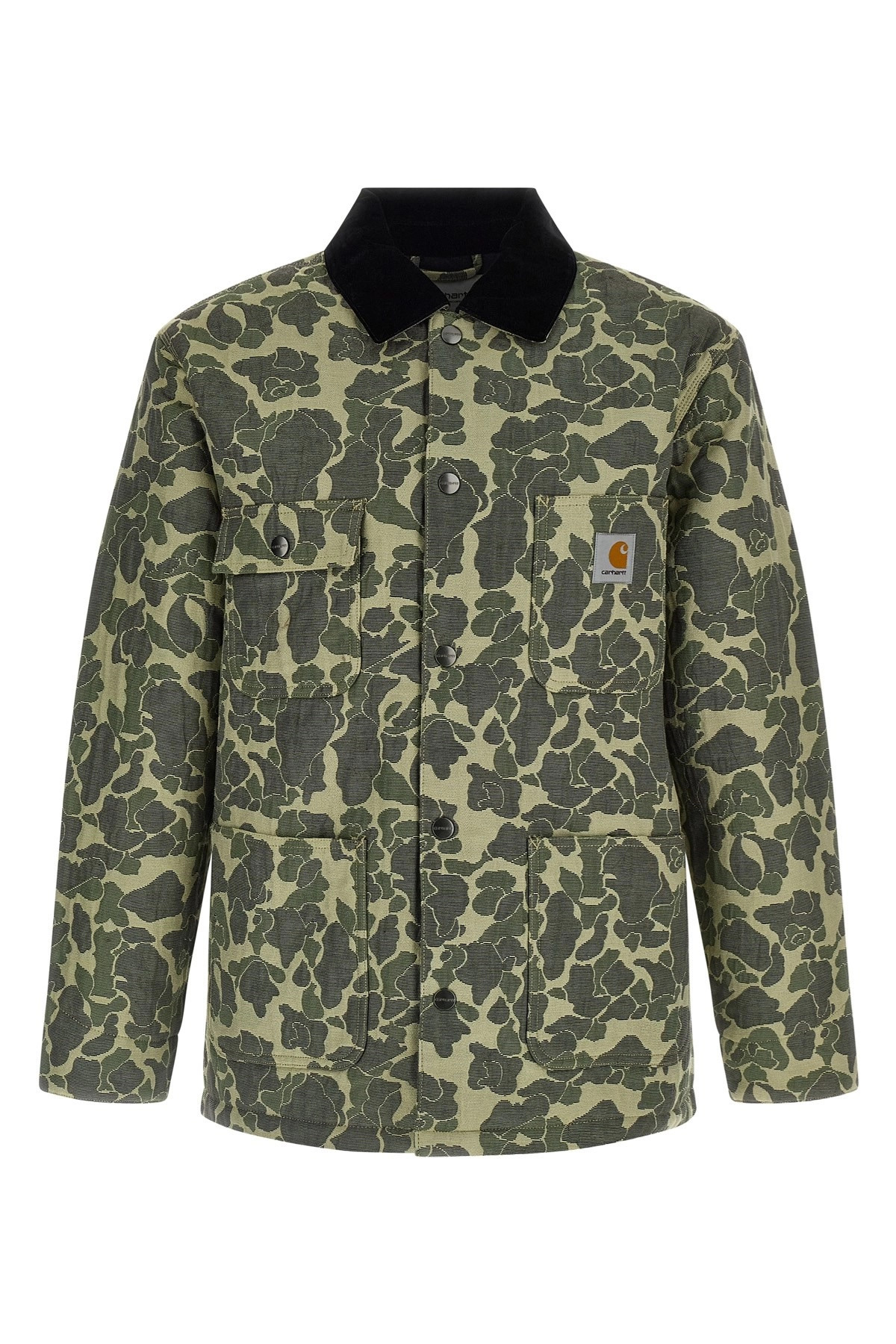 cod. I0353293CKXX Tapestry Chore' medium-weight cotton blend coat with all-over jacquard camouflage pattern, diamond-shaped nylon lining with 3M™ Thinsulate Insulation™ technology, velvet shirt collar, logo patch and front snap button closure, pockets, long cuffed sleeves. Color: Green Size & Fit: true to size fit Composition: 78% cotton 21% polyester 1% nylon Made in: Cambodia