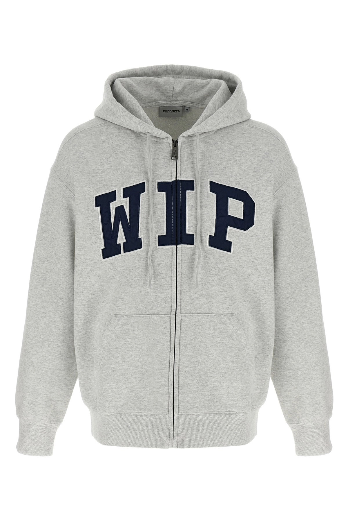 cod. I03469148206 Hoodie in heavy brushed cotton jersey for a plush effect, WIP graphic insert in twill and front zip closure, pockets, long sleeves with cuffs and dropped shoulders, back logo patch. Color: Gray Size & Fit: Loose fit Composition: 80% cotton, 20% polyester Made in: Cambodia