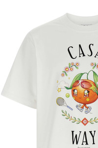 cod. MAW25JTS00102KAWAIIORANGE Cotton T-shirt with front 'Casa Way Orange Mascot' print, crew neck, short sleeves. SUSTAINABLE: This product is made of organic cotton. Color: White Size & Fit: Relaxed fit Composition: 100% organic cotton Made in: Portugal