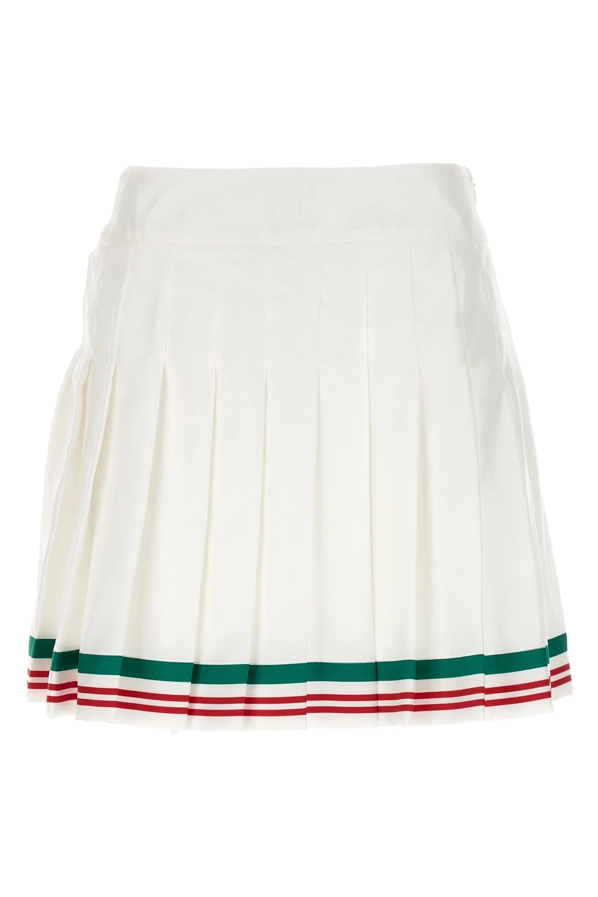 cod. WF23SK03201CASAWAY 'Casa way' pleated silk skirt with band print, invisible zip closure. Color: White Size & Fit: true to size fit UK size Composition: 100% silk