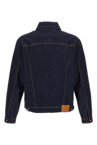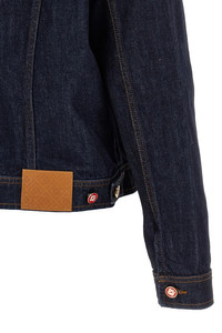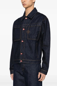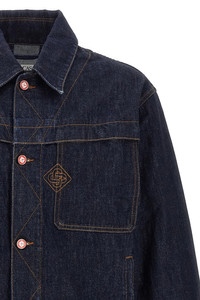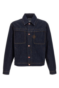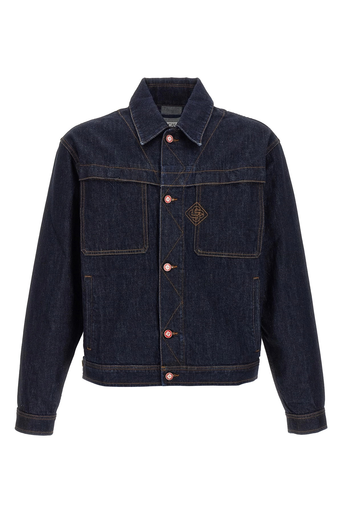 cod. MPF25JK40101INDIGO Cotton denim jacket with contrast stitching, logo embroidery, pockets, front metal logo button closure, long sleeves with cuffs and dropped shoulders. Color: Blue Size & Fit: Comfort fit Composition: 100% cotton Made in: Portugal