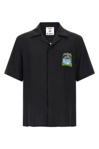 cod. MSP26SH00309 Monogram jacquard silk shirt, pocket and back with 'Volcano' print, front button closure, short sleeves with dropped shoulders. Color: Black Size & Fit: Relaxed fit Composition: 100% silk Made in: Italy