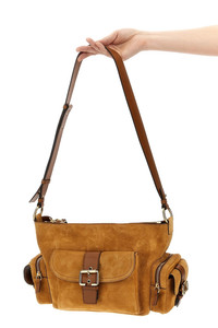 cod. CH25US533P3725M 'Camera Bag' suede shoulder bag with leather details, zip closure, removable handle, magnetic flap pockets and pockets with zip closure, metal details, removable shoulder strap. Color: Brown Size & Fit: W 34 x H 16.5 x D 15 cm Composition: 100% calfskin leather (Bos Taurus) Made in: Italy