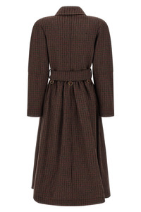 cod. CH25WMA61169990 Pied-de-Poule, double-breasted riding wool coat with front button closure, shirt collar, pockets, padded shoulder, long sleeves with buttons on the cuffs, removable belt, viscose and cotton blend lining. Color: Brown Size & Fit: true to size fit - FRENCH size Composition: 85% virgin wool, 15% polyamide Made in: Italy