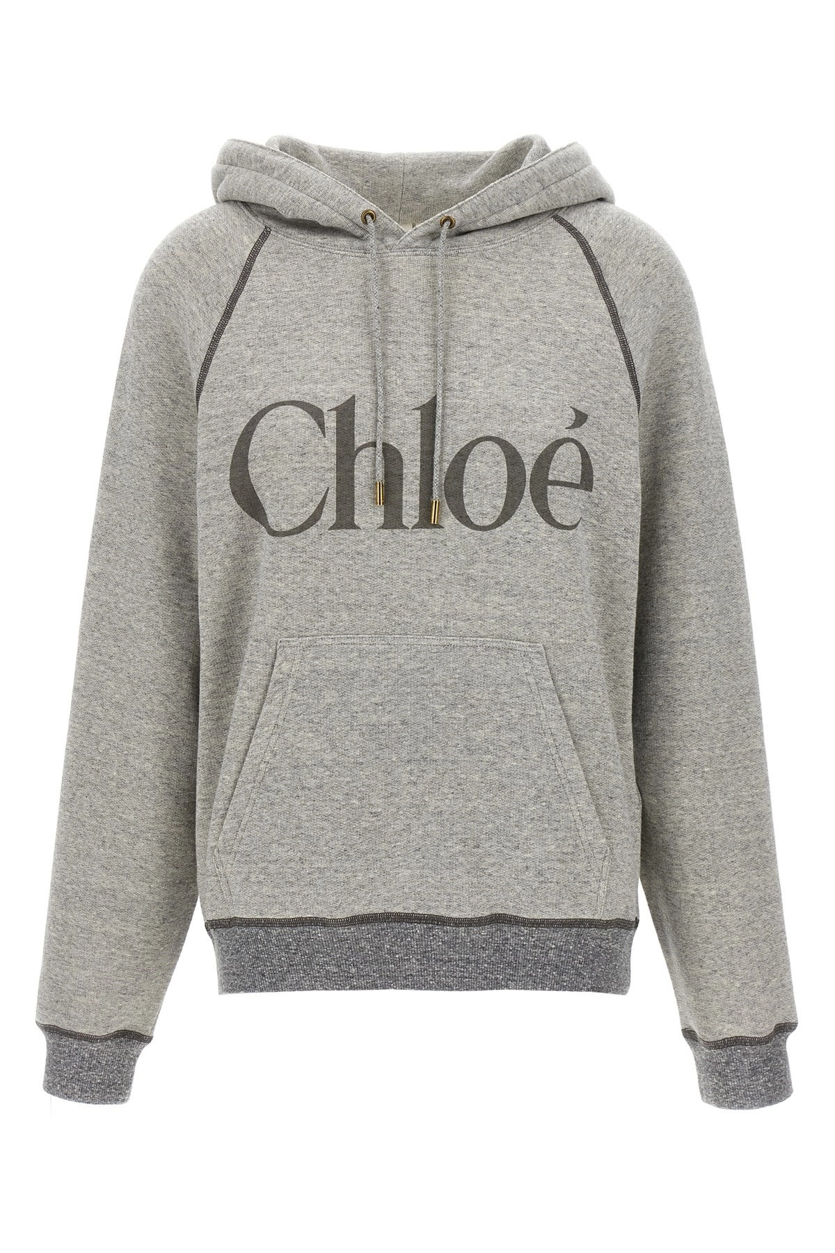 cod. CH25AJH10179060 Chine cotton blend hoodie with front logo print, kangaroo pocket, long cuffed sleeves and dropped shoulders. Color: Gray Size & Fit: oversized fit Composition: 85% cotton, 15% lyocell Made in: Portugal