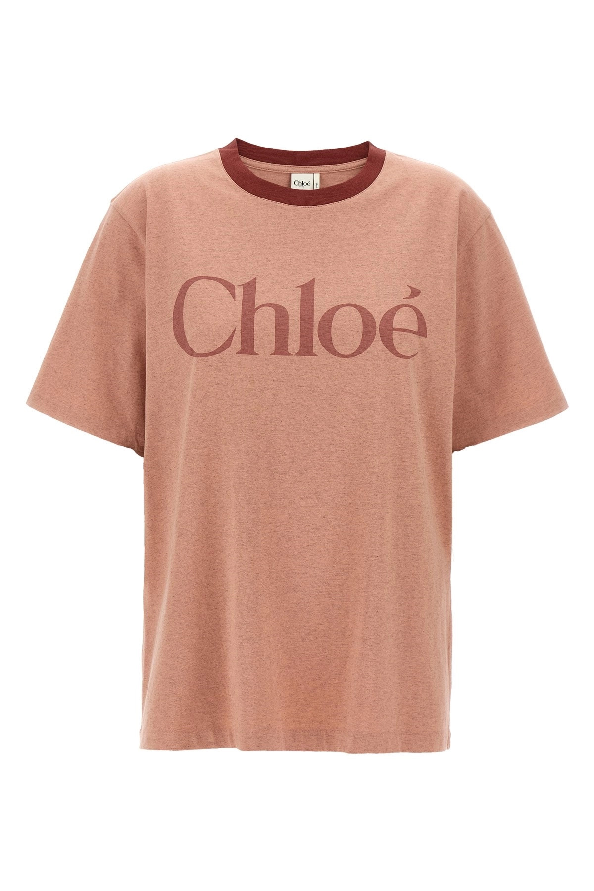 cod. CH25AJH201736B1 Chine cotton blend jersey t-shirt with contrasting details, front logo print, round neckline, and short sleeves. Color: Pink Size & Fit: Comfort fit Composition: 100% cotton Made in: Portugal