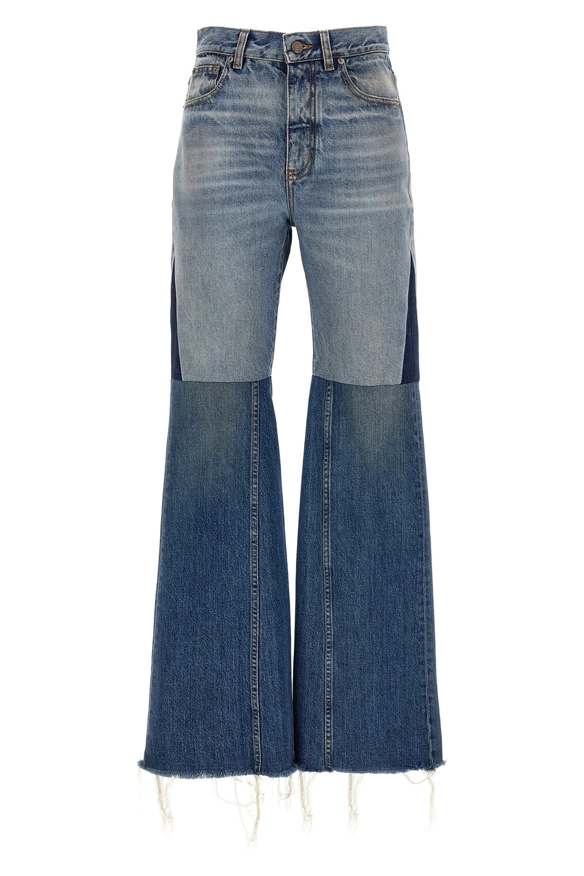 cod. CH24WDP141594ZD Patchwork jeans in cotton denim with zip and button closure, five pockets, leather logo tag, flared leg with frayed hem. Color: Blue Size & Fit: true to size fit Composition: 100% cotton Made in: Italy