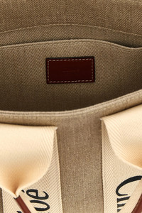 cod. CHC22AS397I2690U 'Woody Small' canvas shopping bag with leather details, double handle with logo, adjustable and removable leather shoulder strap. Color: Beige Size & Fit: W 26 x H 20 x D 9 cm