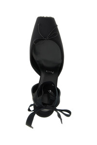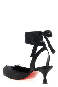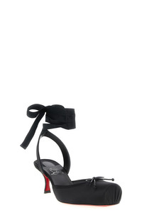 cod. 1260129B439 'Cassia Lace Up' ballerina pumps in shiny effect silk satin with spool heel, back opening with ankle tie, 'Everlasting Red' sole. Color: Black Size & Fit: EU WOMEN Heels: 5.5 cm Composition: 80% silk 13% polyester 4% lh 3% cotton Made in: Italy