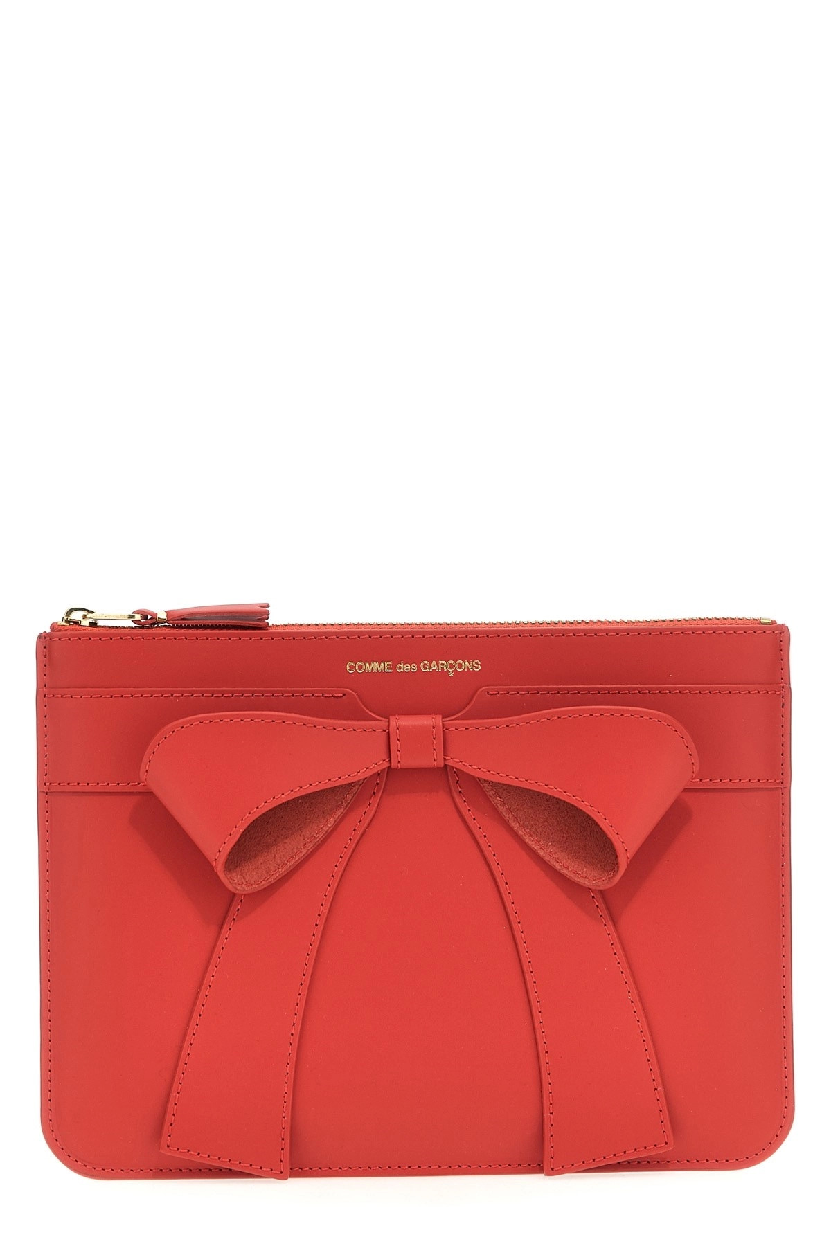 cod. SA5100BBRED Big Bow' leather wallet with bow detail, front embossed logo, and zip closure. Color: Red Size & Fit: W 22 x H 16 cm Composition: 100% cow leather (Bos Taurus) Made in: Spain