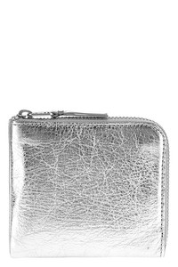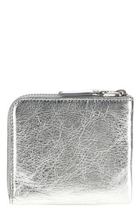 cod. SA3100GSILVER 'Gold Line' laminated leather wallet with zip closure. Color: Silver Size & Fit: W 11 x H 9.5 cm Composition: 100% calfskin leather (Bos Taurus) Made in: Spain