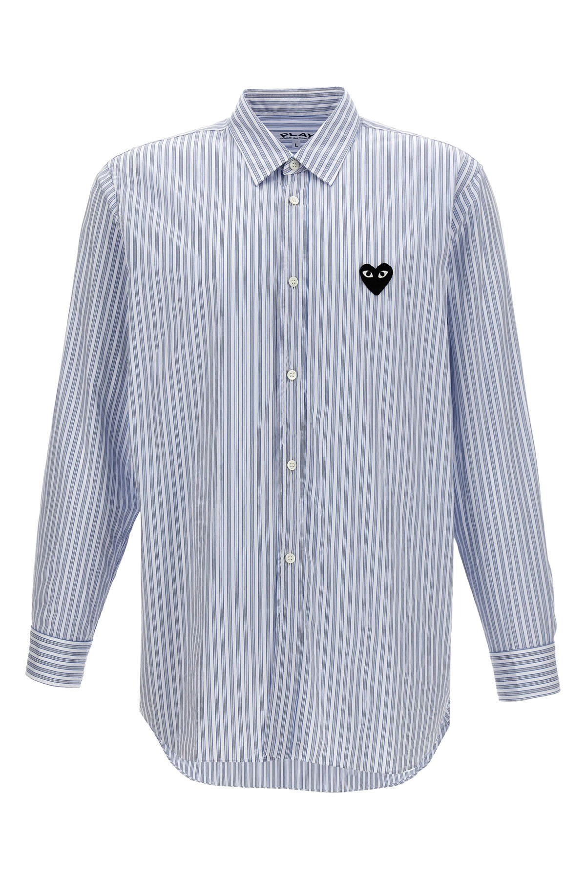 cod. AXB0201 Striped cotton shirt with front logo patch, button closure, long cuffed sleeves. Color: Light Blue Size & Fit: True to size fit