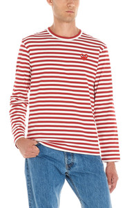 cod. AXT1644 Striped cotton t-shirt, with front logo patch, crew neck, long sleeves. Color: Red Size & Fit: true to size fit Composition: 100% cotton Made in: Japan