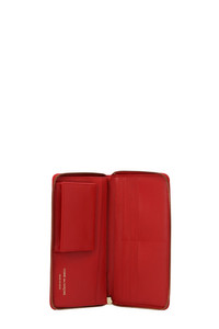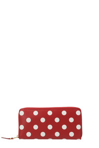 cod. SA0110PDRED 'Polka dots printed’ leather wallet with zip. Color: Red Size & Fit: W 10 x H 20 x D 2 cm Composition: 100% calfskin leather Made in: Spain