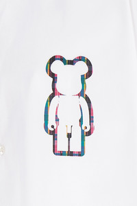cod. FOB038S251 Comme des Garcons Shirt x BE@RBRICK cotton shirt with front print, button closure, short sleeves with dropped shoulders. Color: White Size & Fit: oversized fit Composition: 100% cotton Made in: France