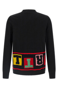 cod. FPN001W251 Light wool blend sweater with front and back intarsia, crew neck, long cuffed sleeves. Color: Black Size & Fit: true to size fit Composition: 57% acetate 23% wool 20% nylon Made in: Japan