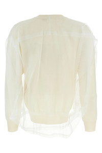 cod. GOB0191 Wool sweater, multilayer tulle detail, crew neck, long sleeves. Color: White Size & Fit: True to size fit Composition: 100% wool Made in: Japan
