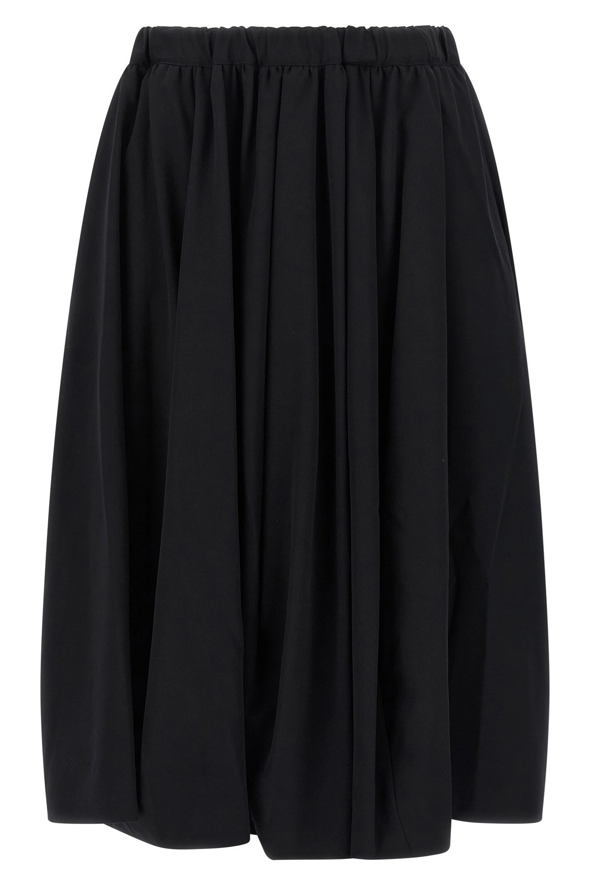 cod. GPS0171 Maxi wool skirt, wheel model with pleats, adjustable drawstring elastic waistband, pockets, unlined. Color: Black Size & Fit: Comfort fit Composition: 100% wool Made in: Japan