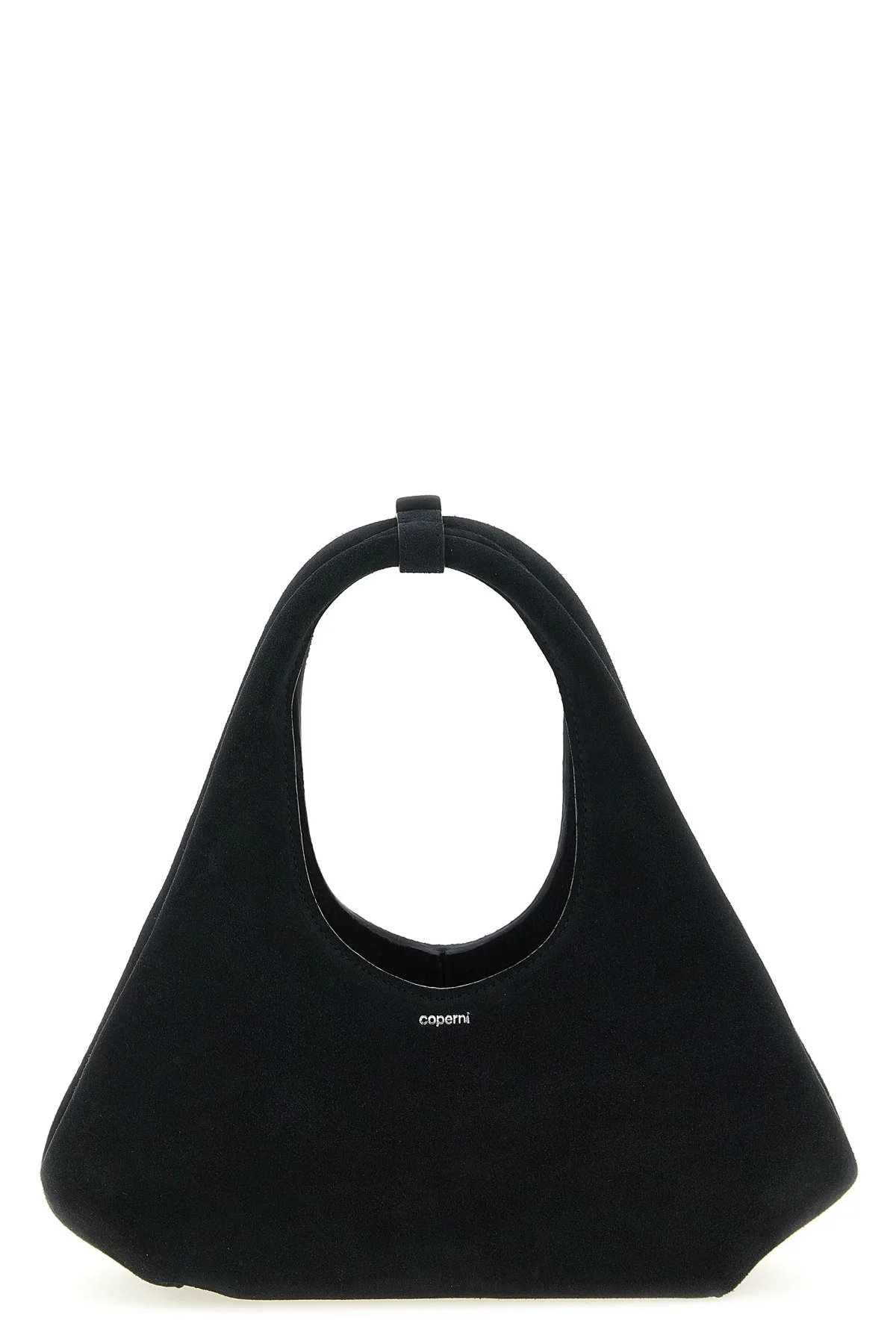 cod. COPBA128F6049BLK 'Folded Mini' suede handbag with front embossed logo, zip closure, double fixed tubular handle. Color: Black Size & Fit: W 28 x H 10.5 x D 10 cm Composition: 100% cow leather (Bos Taurus) Made in: Italy