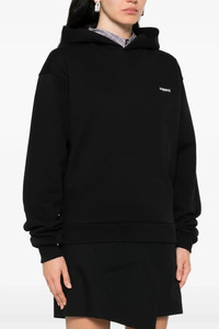 cod. COPJS15BISF5035BLKWHT Horn' fleece cotton sweatshirt with front logo print, hood with two small fabric horns, kangaroo pocket, long cuffed sleeves and dropped shoulders. Color: Black Size & Fit: true to size fit Composition: 79% cotton, 21% polyester Made in: Portugal