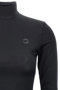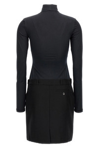 cod. COPR140545BLK Hybrid' dress with tech fabric sweater with high neck and long sleeves with thumb room and skirt with trompe l'oeil details. SUSTAINABLE: Product made from recycled polyester. Color: Black Size & Fit: true to size fit Composition: 100% polyester Made in: Portugal