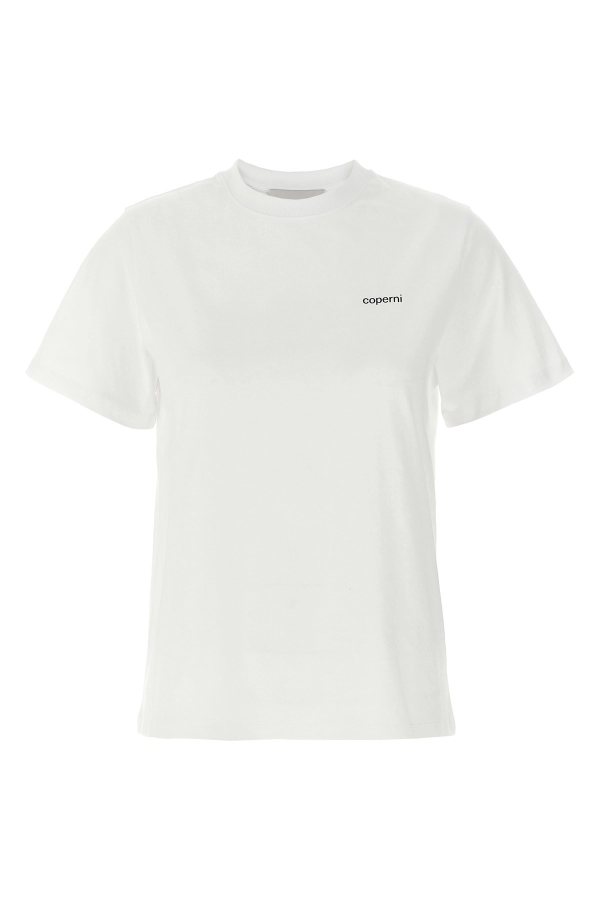 cod. COPJS03504WHITE Cotton T-shirt with front logo print, crew neck, short sleeves. Color: White Size & Fit: Boxy fit Composition: 100% cotton Made in: Portugal