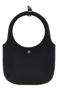 cod. 225GSA102PL00849999 'Holy' satin handbag with front metal logo, double fixed handle with strap detail, magnetic closure, adjustable and removable shoulder strap. Color: Black Size & Fit: W 25 x H 18 x D 5 cm Composition: 97% polyester, 3% elastane Made in: Italy
