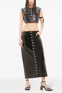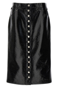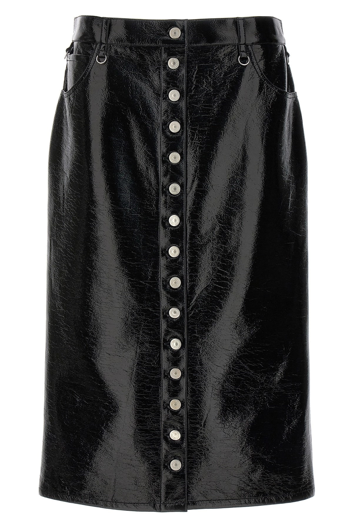 cod. 124CJU155VY00149999 Multiflex' vinyl skirt, front button closure, pockets. Color: Black Size & Fit: true to size fit French size Composition: 88% co, 10% pa, 2% ea Made in: Portugal