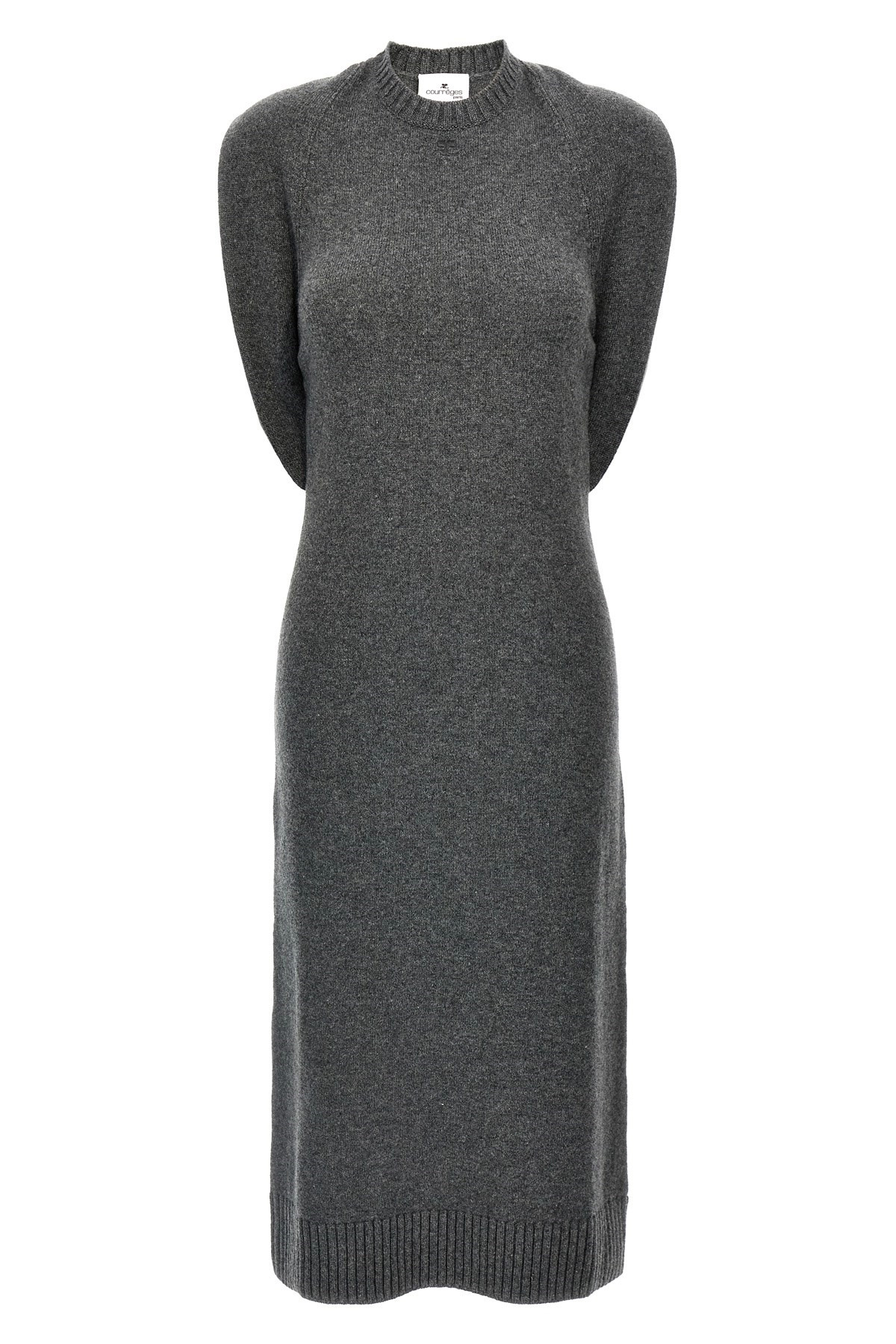 cod. 324MRO467FI00629001 'Over The Shoulder Drape' wool dress, crew neck, front logo, sleeveless and bare back. Color: Gray Size & Fit: true to size fit Composition: 100% wool Made in: Italy